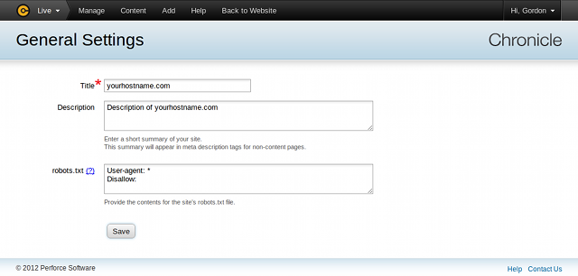 The Perforce Server connection settings are also presented to assist with any administrative tasks you may need to perform outside of Chronicle.